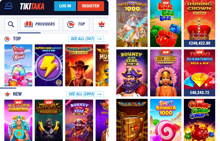 Online casinospelers hebben toegang tot een grote spelcollectie met meer dan 11.700 titels beschikbaar bij TikiTaka. De site bevat alles van videoslots en tafelspellen tot live dealer-opties en een volledige sportsbook. Filters en provider-tabs helpen bij het sorteren van de spellen, en de lay-out werkt goed op verschillende schermformaten.